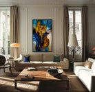 Your canvas can simply be hung directly on two nails or screws by means of the carrier frame. If you choose additional framing with a floater frame, a metal hanging bracket will be fitted on this frame. Smaller sizes are also suited for display on picture shelves.